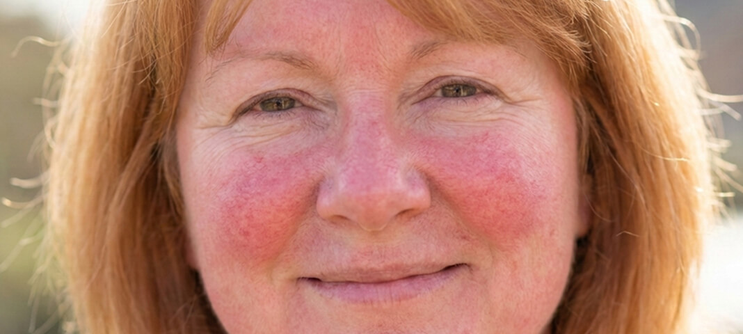 La rosácea es una enfermedad inflamatoria crónica multifactorial de la piel que afecta principalmente al rostro. Se caracteriza por episodios de eritema facial (enrojecimiento de la piel), vasos sanguíneos dilatados (telangiectasias), protuberancias o granitos y, en algunos casos, engrosamiento de la piel.